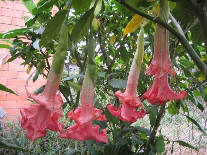 Главное их отличие – в расположении цветов на кустарничке: у бругмансии они поникающие вниз, у дурмана расположены вертикально вверх либо слегка отклонены в сторону.