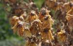 - Оставшиеся стебли обрезать так, чтобы кустик получил желаемую форму. Рез делать выше узла. Цветки образуются из почек, расположенных под срезами.