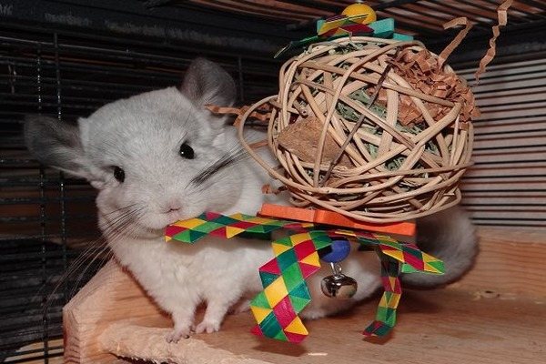 Для разнообразия жизни шиншиллы хозяину необходимо покупать различные игрушки. Чтобы грызун привык к новому предмету, нужно давать его постепенно. Реакция животного поможет определить, нравится ли ему игрушка или нет. Количество игровых изделий должно быть небольшим, чтобы избежать захламления жилого пространства в клетке.