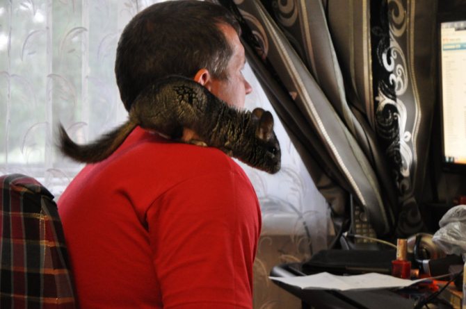 - Как правило, любимец привыкает к рукам владельца в течение 1-2 недель. По прошествии этого срока можно аккуратно взять питомца в ладони. Но ни в коем случае не хватайте зверька за загривок. Такое действие будет ассоциироваться у любимца с нападением змеи, он станет обороняться — укусит владельца или пустит струйку едкой мочи.