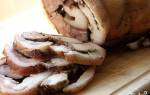 Отделите конечности свиньи, разрезая их по суставам. Теперь срежьте с боков сало. Тушу разрубите топором, ориентируясь по ребрам и позвонкам.