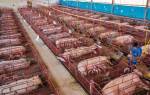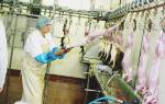 - Основная сложность – срезать ровным пластом кожу со щеки с тонким слоем сала. Далее крупными пластами нарезают язык и другие мясные части. Всю свинину моют и обсушивают.