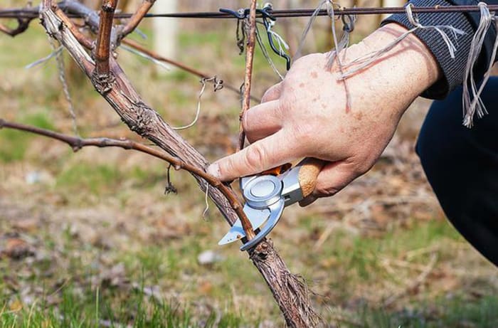 - Обрезка взрослого винограда.