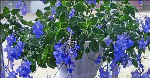 - Streptocarpella Glandulosissimus – растение имеет сочный толстый ствол бордового цвета, от которого отходят многочисленные длинные побеги с ярко синим колокольчиком на конце. Листья мелкие, изумрудного оттенка, цветок активно кустится;