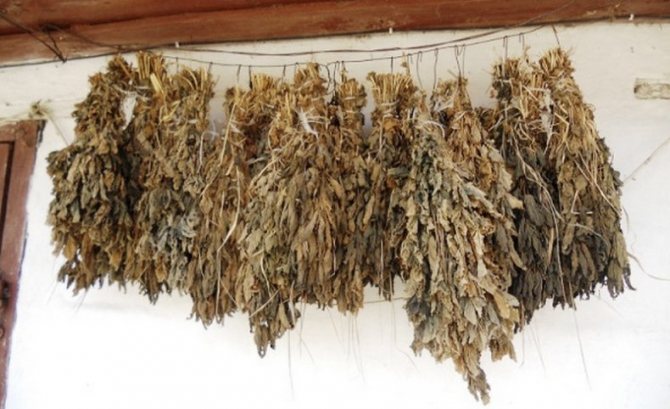 Свежие побеги собираются в небольшие пучки, размером с банный веник и связываются веревкой или ниткой. Далее они подвешиваются к потолку или у стены в сеннике, амбаре или чердаке. Они высыхают, и потом пучок развязывается и раздается кроликам.