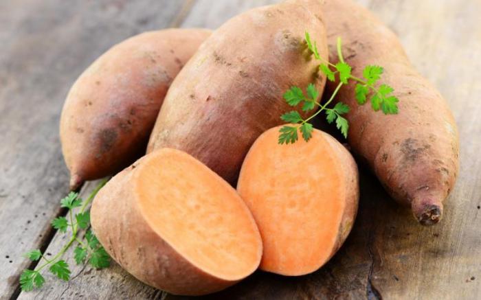 Сладкий картофель (земляная груша, топинамбур или батат) – отличный источник бета-каротина, который также в значительной степени удовлетворяет нехватку витамина А. Дело в том, что наш организм трансформирует бета-каротин в этот витамин, который необходим для восстановления поврежденных клеток, защиты волос от сухости, нормализации работы сальных желез.
