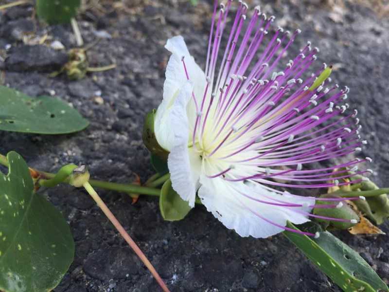 Цветущий каперсник обладает удивительной притягательностью. Притом, что цветение продолжается все лето. Поэтому растение часто используется для создания уникального ландшафтного дизайна. Стелющаяся лиана не отличается требовательностью к почве, поэтому будет себя комфортно ощущать на песчаных и каменистых землях. И замечательно там расти до 15 лет без пересадок.