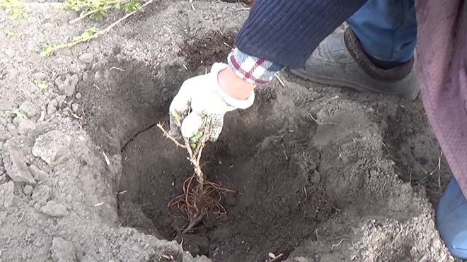 Саженцы лучше покупать в специализированных магазинах или питомниках. Размер корней должен быть не менее 25 см в длину. Возраст — не превышать 2 лет. Непосредственно перед самой посадкой удаляются все сухие части саженца, а корни замачивают в гумате натрия в пропорции 3 ст. л. на 5 л воды.