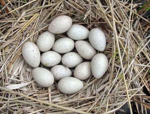 Если в водоёме достаточно еды и вокруг относительно безопасно, то именно там чёрная утка и сделает гнёзда для кладки яиц. Располагаться гнёзда лысухи