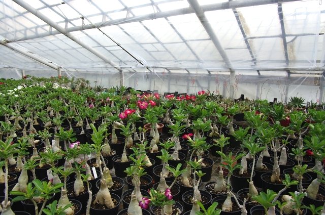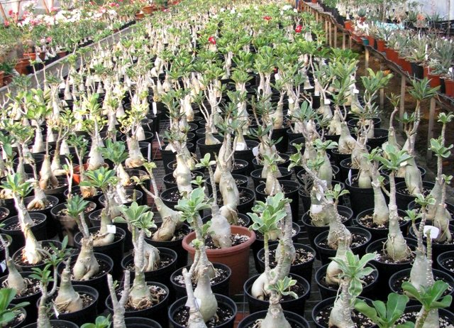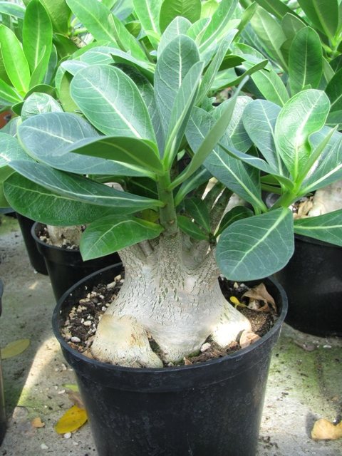 - Грунт для взрослых адениумов лучше не делать очень питательным, вы всегда сможете отрегулировать их рацион при помощи удобрений. Бедный субстрат, в котором периодически появляется питание, хорошо стимулирует рост каудекса, так как растение стремится сделать запас — срабатывают природные механизмы.