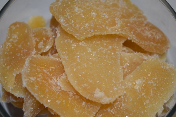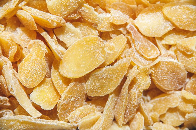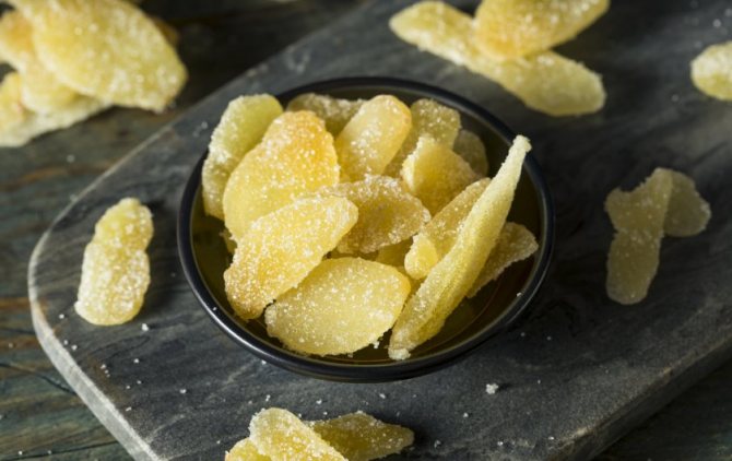 Засахаренный имбирный корень приносит не только пользу, но и вред. На протяжении дня можно употреблять только 4 г продукта.
