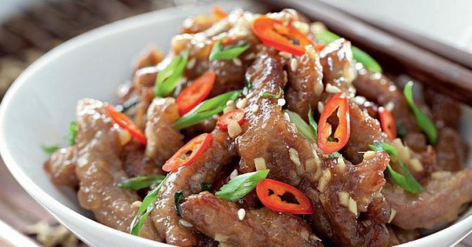 Чтобы приготовить соус для мяса, нужно имбирь, молотый смешать с соевым соусом, сахаром, сушеным базиликом и измельченным чесноком. Полученный соус вливают к мясу, которое тушится на огне, за 15 минут до готовности.