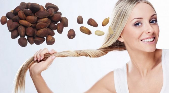 Применение масла кедрового ореха позволяет улучшить состояние волос, устранить сухость и посеченные кончики, придать им блеска, эластичности гладкости. Маски с добавлением нескольких капель масла помогают избавиться от перхоти, улучшить кровообращение в коже головы. Это способствует улучшению роста волос, предотвращению их выпадения.