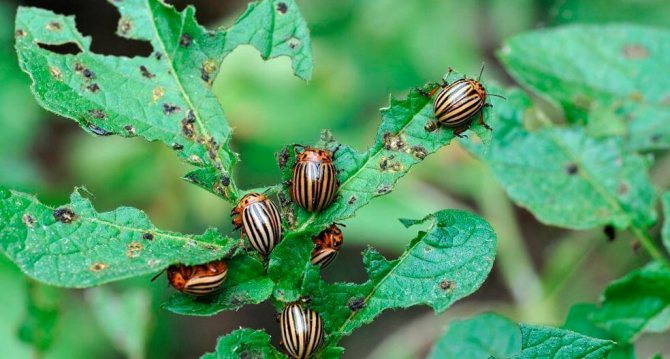 Излюбленное лакомство колорадских жуков – это картофель, его насекомые могут поглощать в любом виде: начиная от сочных побегов и заканчивая созревшими клубнями. Такое перемещение по растущей культуре часто приводит к ее гибели, поэтому бороться с вредителями нужно сразу же, как только они были замечены на участке.