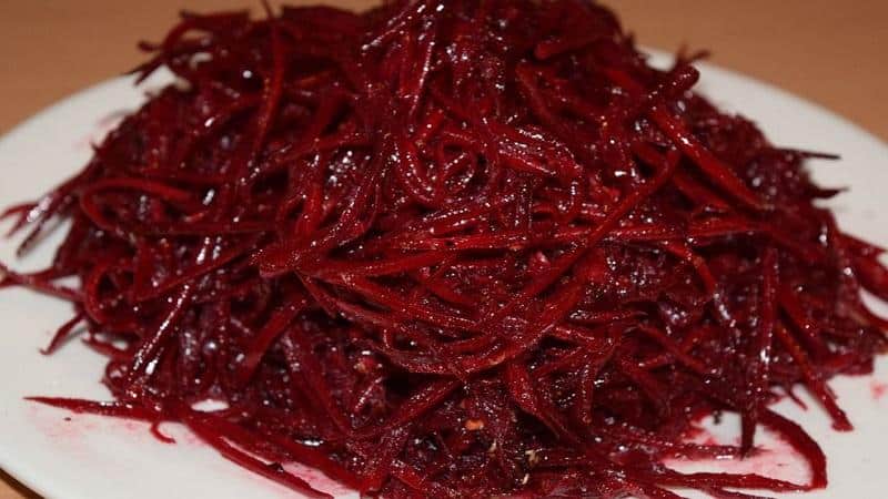 Для его приготовления необходимо взять 2 части свеклы и по 1 белокочанной капусты, сырой моркови и зеленого яблока. Все продукты трутся на среднюю терку и заправляются оливковым маслом.