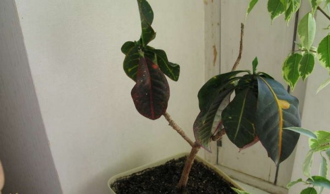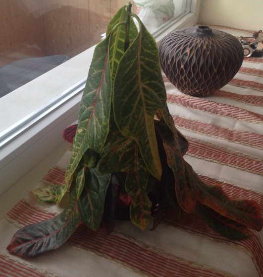 Кротон опустил листья, что делать. Другие причины увядания листьев кротона