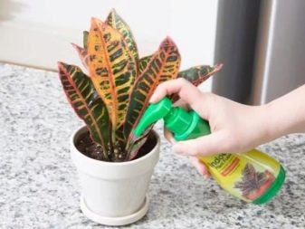 увеличивайте объем полива. Также можете немного взбрызнуть на листья кротона водой.