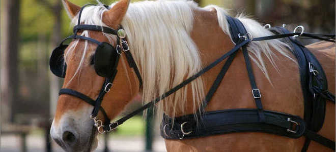 Именно этой особенностью и объясняется, зачем лошадям закрывают глаза. Делается это еще в стойле посредством надевания специальных пластин под названием шоры. Их закрепляют на морде лошади. Они используются именно для того, чтобы закрыть ей обзор по бокам. Подобное ограничение зрения лошади позволяет не допустить отвлекания лошади на посторонние явления, а именно, движение по бокам дороги или на толпу ипподрома.