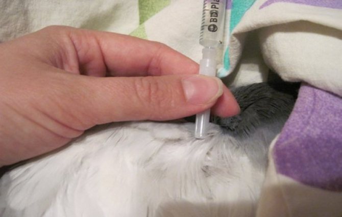 Если поголовье голубей невелико, можно использовать интраназальный метод, то есть, введение вакцины методом закапывания её в носовое отверстие.