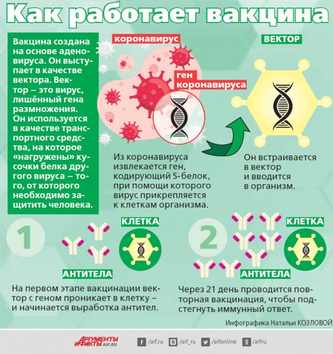 На самом деле. Эта реакция совершенно нормальная. Вакцина «Спутник V», которая используется сегодня, – это векторная вакцина. Суть технологии состоит в том, что для получения вакцины учёные берут аденовирус, лишённый возможности размножаться. Внутрь аденовируса «вставляют» кусочек РНК с информацией о белке коронавируса (S-протеине), с которым необходимо познакомиться иммунной системе, чтобы выработать защитные антитела. То есть аденовирус выступает в качестве «транспортного средства», к которому «прицеплен» S-белок коронавируса. Так вот, повышенная температура и недомогание – это всего лишь реакция организма на встречу с аденовирусом. Подобные симптомы возникают не у всех, а если и возникают, то обычно проходят в течение нескольких дней, так как из-за отсутствия генов размножения аденовирус неспособен вызвать настоящее заболевание.